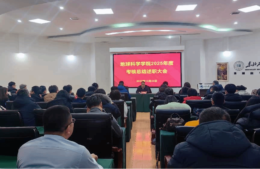2025年12月24日,地球科学学院召开2025年度考核总结述职大会,总结本年度工作成效,全面复盘“十四五”规划完成情况,谋划“十五五”重点工作。学院领导班子成员、全体教职工及学校第四考核组成员参加会议。会议由院长孙雨主持,考核组组长、纪委副书记兼纪委办公室主任宫龙江出席会议并讲话。