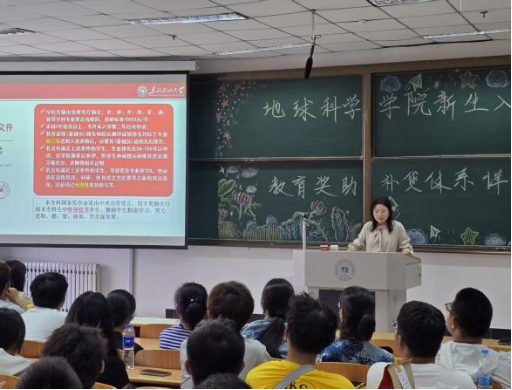 学院党委书记韦丹宁以《开启地学人生 赋能能源未来》为题讲授“开学第一课”,从国家能源战略需求切入,系统阐释地学学科的时代价值,引导新生建立“专业成才一行业建功一国家贡献”的成长认知链。