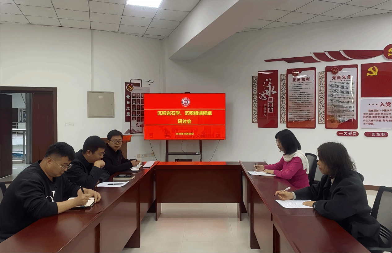 2025年10月20日,地球科学学院《沉积岩石学》和《沉积相》课程组在学院610会议室开展教学研讨活动。课程组成员孙雨、文慧俭、范广娟、蒋飞、李磊参会,孙雨主持会议。